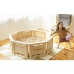 奈良県産ヒノキを使ったこのボールプールは、天然素材の温かみと安全性を兼ね備えた特別な遊具です。直径約1.5mのフェンスと3,500個の木球がセットになっており、子どもが安心して遊べる空間を作り出します。